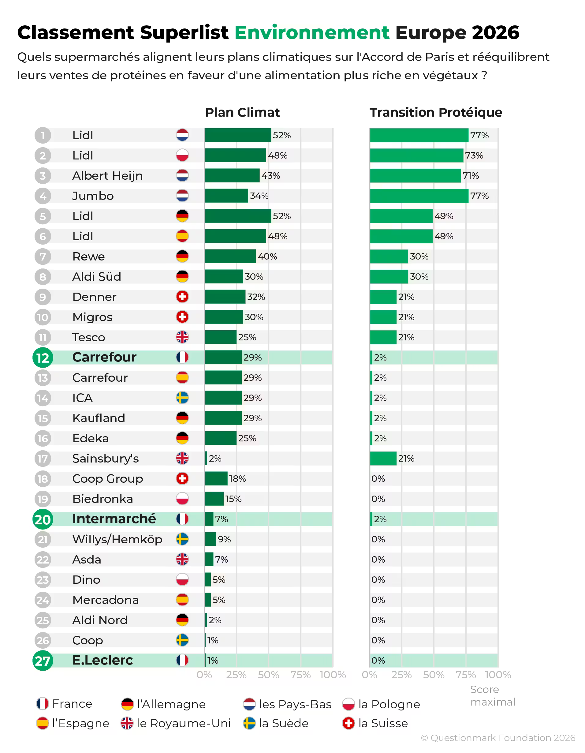 Le rapport Superlist Environment Europe 2026 a mis un coup de projecteur brutal sur la grande distribution européenne.