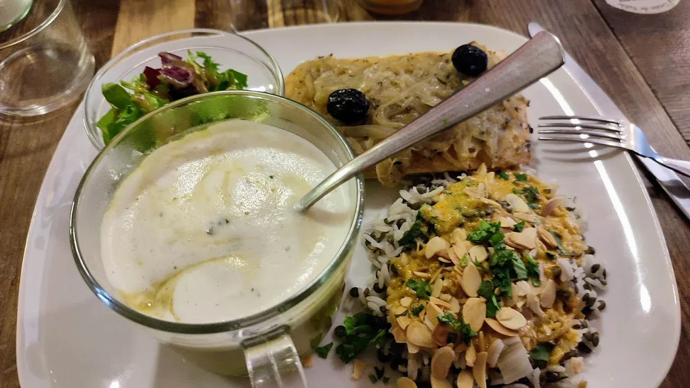 Grain de Sable propose une cuisine végétarienne bio et de saison, avec une approche simple et cohérente basée sur des produits locaux et faits maison.